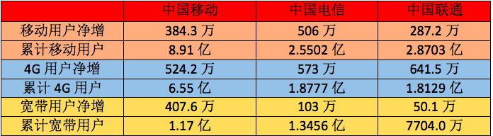 盡管中國聯(lián)通和中國電信已經(jīng)“蠻拼的”,但是不得不承認,中國移動依然是這個市場的“大哥大”。在移動用戶總數(shù)上,電信聯(lián)通依然無法企及,4G用戶上更是突破了6.5億。同時在固網(wǎng)方面持續(xù)發(fā)力,作為后起之秀搶占了不少固網(wǎng)市場。